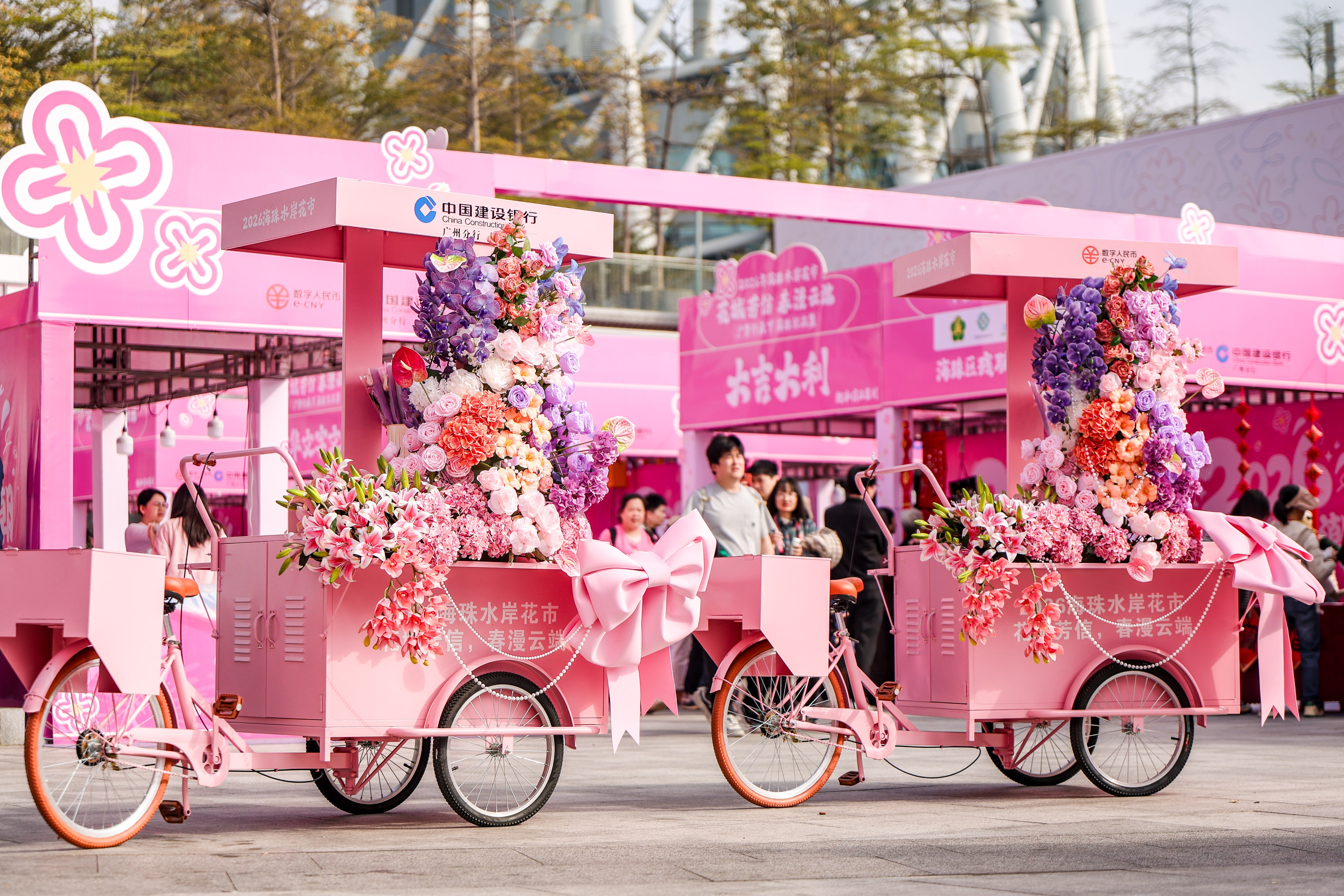 据介绍,为打破传统花市边界,本届海珠花市创新性提出“水岸迎春”概念,以江畔城市地标广州塔为核心视觉焦点,将花市场景延伸至珠江岸线,与海珠滨江传统花市一东一西遥相呼应,形成全城独有的“塔映繁花 水伴年味”的独特景观。现场不仅汇聚年花、广府年货等传统业态,更引入本土老字号、潮流文创品牌设摊,非遗技艺与新潮设计同台亮相。以花为媒、以塔为景,既传承了广府年俗文脉,更打造出兼具底蕴与颜值的城市记忆场景,为市民游客提供沉浸式的新春打卡地,夯实文旅消费的场景基底。